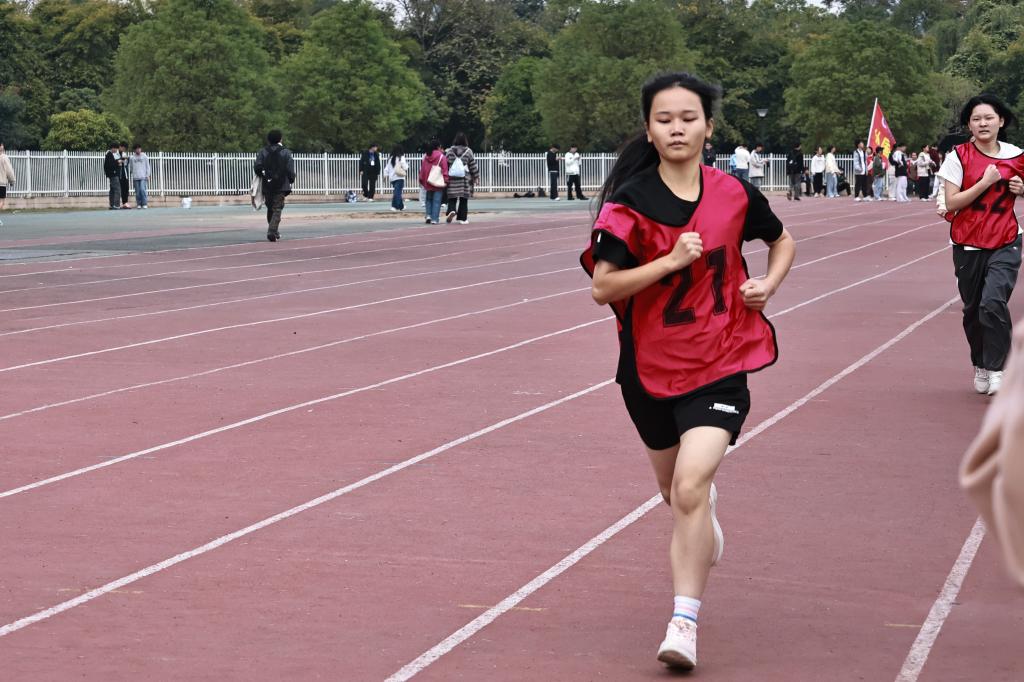 上午,女子800米决赛在众人瞩目下鸣枪开赛。该项目兼具耐力与速度考验,竞争异常激烈,英语2481班文敏代表我院参赛。初期,她稳扎稳打,处于队伍中游。进入第一圈后半程,她调整呼吸、加快步频,凭借灵活跑位在弯道多次超越,顺利跻身前列。冲刺阶段,全场欢呼声达到顶峰,文敏拼尽最后力气,奋力摆动双臂,大步冲向终点。以3分21秒66的成绩荣获第八名。