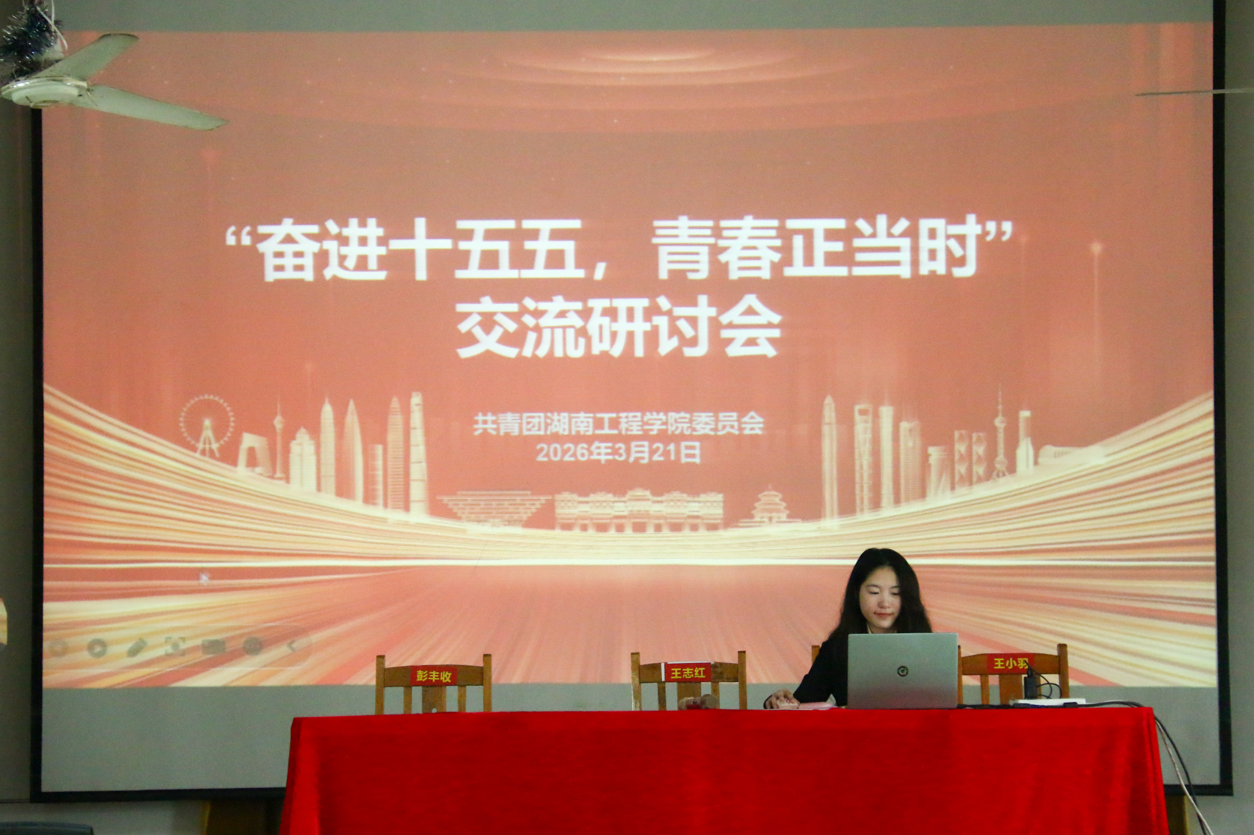 为深入学习贯彻“十五五”规划部署与党的二十届四中全会精神,引领青年学子坚定理想、勇担使命,3月21日下午,共青团湖南工程学院委员会在第一教学楼四楼主办“奋进十五五,青春正当时”交流研讨会,我院青年学生代表齐聚一堂,共话时代发展,畅谈青春担当。